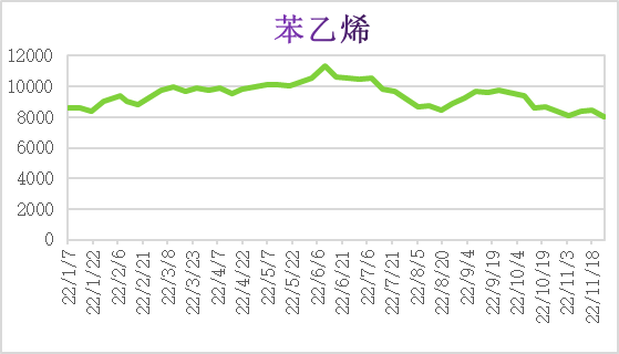 苯乙烯:國(guó)內(nèi)苯乙烯市場(chǎng)價(jià)格下跌較多,北方市場(chǎng)價(jià)格低位,京津冀市場(chǎng)以及個(gè)別企業(yè)價(jià)格暫穩(wěn)運(yùn)行,在下跌的情況下,苯乙烯下游采購(gòu)積極性不高,多以低掛為主,意向買到8000元/噸左右的價(jià)格,持貨商積極銷售,下游逢低采購(gòu)情緒增加,短期內(nèi)苯乙烯市場(chǎng)繼續(xù)下跌為主。
